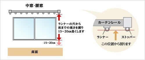 ・ドレープ・レースそれぞれのレールの高さより算出願います。